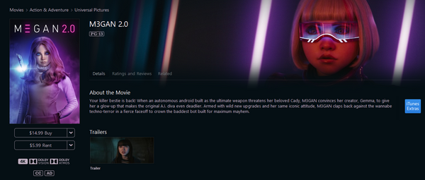 M3GAN 2.0 Theatrical + Unrated Versions 4K Digital Code (2025) (Redeems in Movies Anywhere; 4K Vudu Fandango at Home & 4K iTunes Apple TV Transfer From Movies Anywhere)