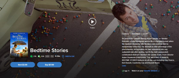 Up for sale is a single redemption HD Movies Anywhere digital movie code for Bedtime Stories (2008), redeemable directly into Movies Anywhere.