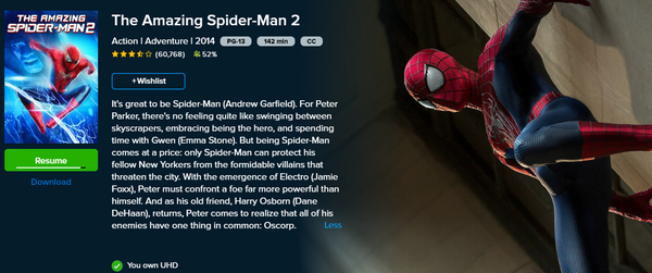 The Amazing Spider-Man 2 4K Digital Code (2014) (Redeems in Movies Anywhere; 4K Vudu Fandango at Home & 4K iTunes Apple TV Transfer From Movies Anywhere)