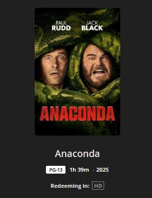 Up for sale is a single redemption HD Movies Anywhere digital movie code for Anaconda (2025), redeemable directly into Movies Anywhere.