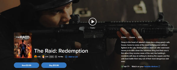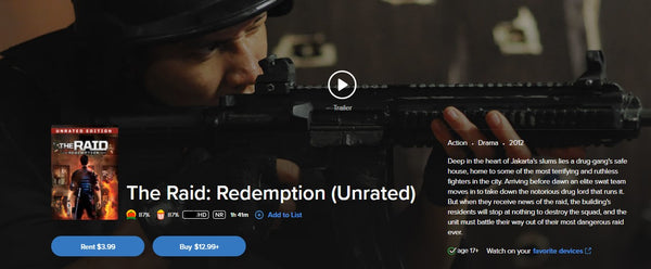 Up for sale is a single redemption HD Movies Anywhere digital movie code for The Raid: Redemption (2012 unrated and theatrical versions), redeemable directly into Movies Anywhere.