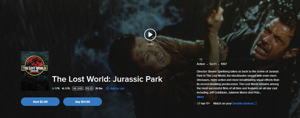 The Lost World: Jurassic Park 4K Digital Code (1997) (Redeems in Movies Anywhere; 4K Vudu Fandango at Home & 4K iTunes Apple TV Transfer From Movies Anywhere)
