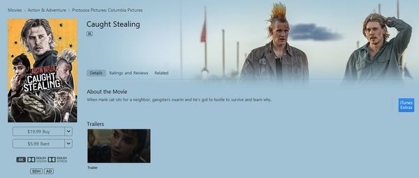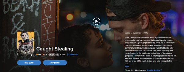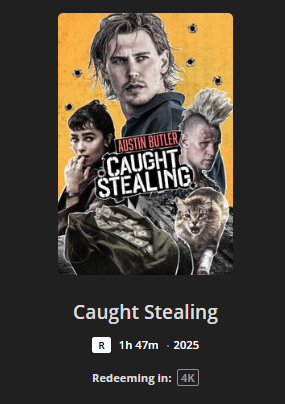 Caught Stealing 4K Digital Code (2025) (Redeems in Movies Anywhere; 4K Vudu Fandango at Home & 4K iTunes Apple TV Transfer From Movies Anywhere)