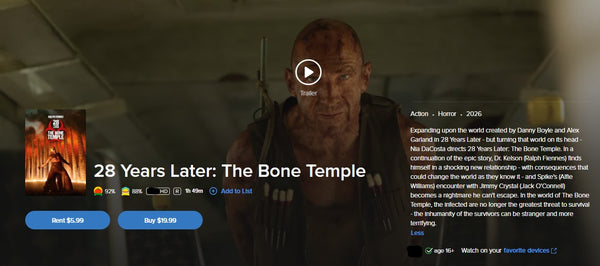 Up for sale is a single redemption HD Movies Anywhere digital movie code for 28 Years Later: The Bone Temple (2026), redeemable directly into Movies Anywhere.