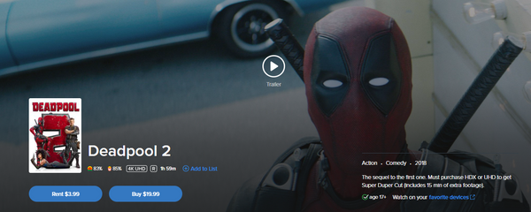 Up for sale is a single redemption 4K Movies Anywhere digital code for Deadpool 2 (2018), redeemable directly into Movies Anywhere.Β