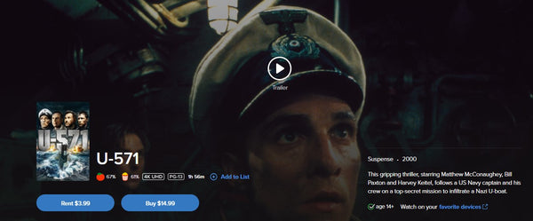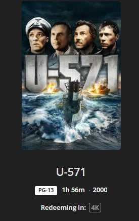 Up for sale is a single redemption 4K Movies Anywhere digital movie code for U-571 (2000), redeemable directly into Movies Anywhere.