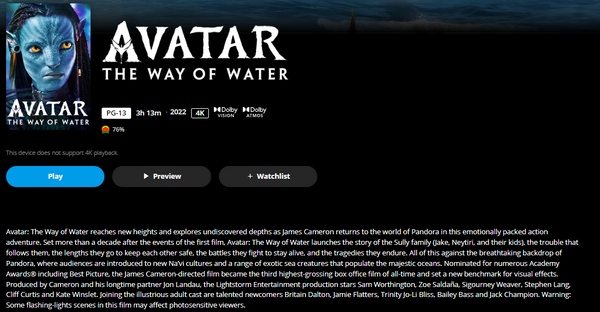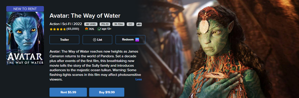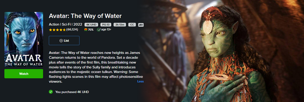 Avatar: The Way of Water 4K Digital Code (2022) (Redeems in Movies Anywhere; 4K Vudu Fandango at Home & 4K iTunes Apple TV Transfer From Movies Anywhere)