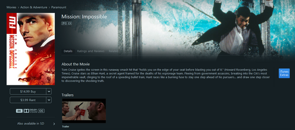 Up for sale is a single redemption 4K iTunes Apple TV digital movie code for Mission: Impossible (1996), redeemable directly into iTunes Apple TV.ย