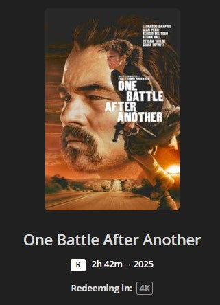 Up for sale is a single redemption 4K Movies Anywhere digital movie code for the One Battle After Another (2025), redeemable directly into Movies Anywhere.