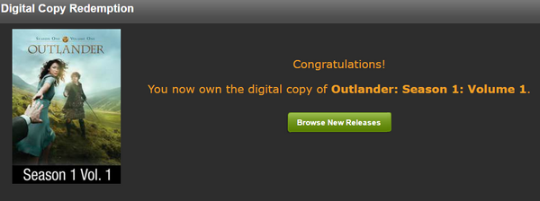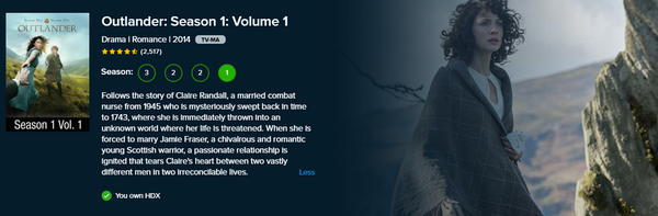 Up for sale is a single redemption HDX Vudu Fandango at Home digital TV code for Outlander Season 1 Volume 1, redeemable directly into Vudu Fandango at Home.