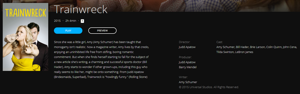 Up for sale is a single redemption HD iTunes Apple TV digital movie code for Trainwreck (2015 theatrical version), redeemable directly into iTunes Apple TV.Β