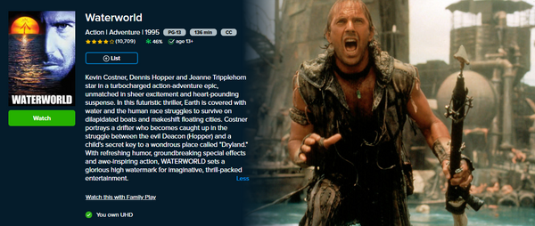 Up for sale is a single redemption 4K Movies Anywhere digital movie code for Waterworld (1995), redeemable directly into Movies Anywhere.