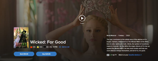 Up for sale is a single redemption HD Movies Anywhere digital movie code for the Wicked: For Good (2025), redeemable directly into Movies Anywhere.